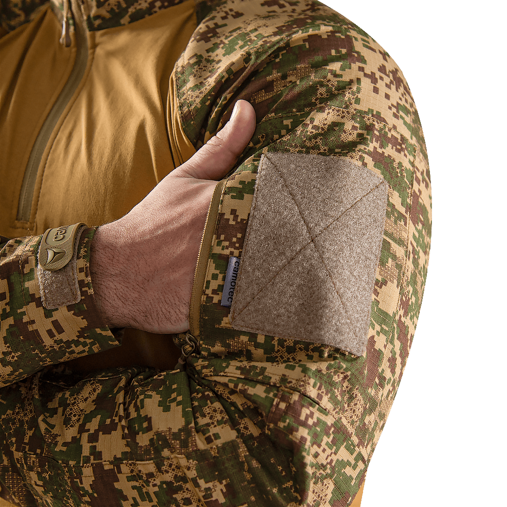 Кишені з обох боків рукавів і липучки для патчів та шевронів зверху забезпечують зручність та функціональність.