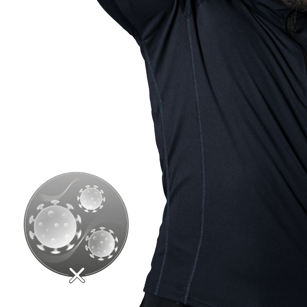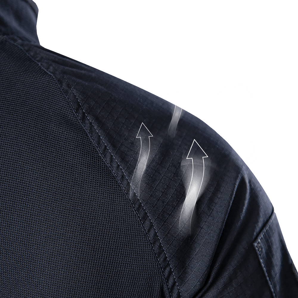 Тулуб і пахви вироблені з тканини CoolPass Air 2.0. Має відмінні паропроникні властивості. Основною фішкою цього матеріалу є те що він швидко вбирає вологу від тіла, розподіляє на велику площу та випаровує її назовні. На шиї позаду вставка з еластичного матеріалу для свободи рухів.