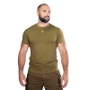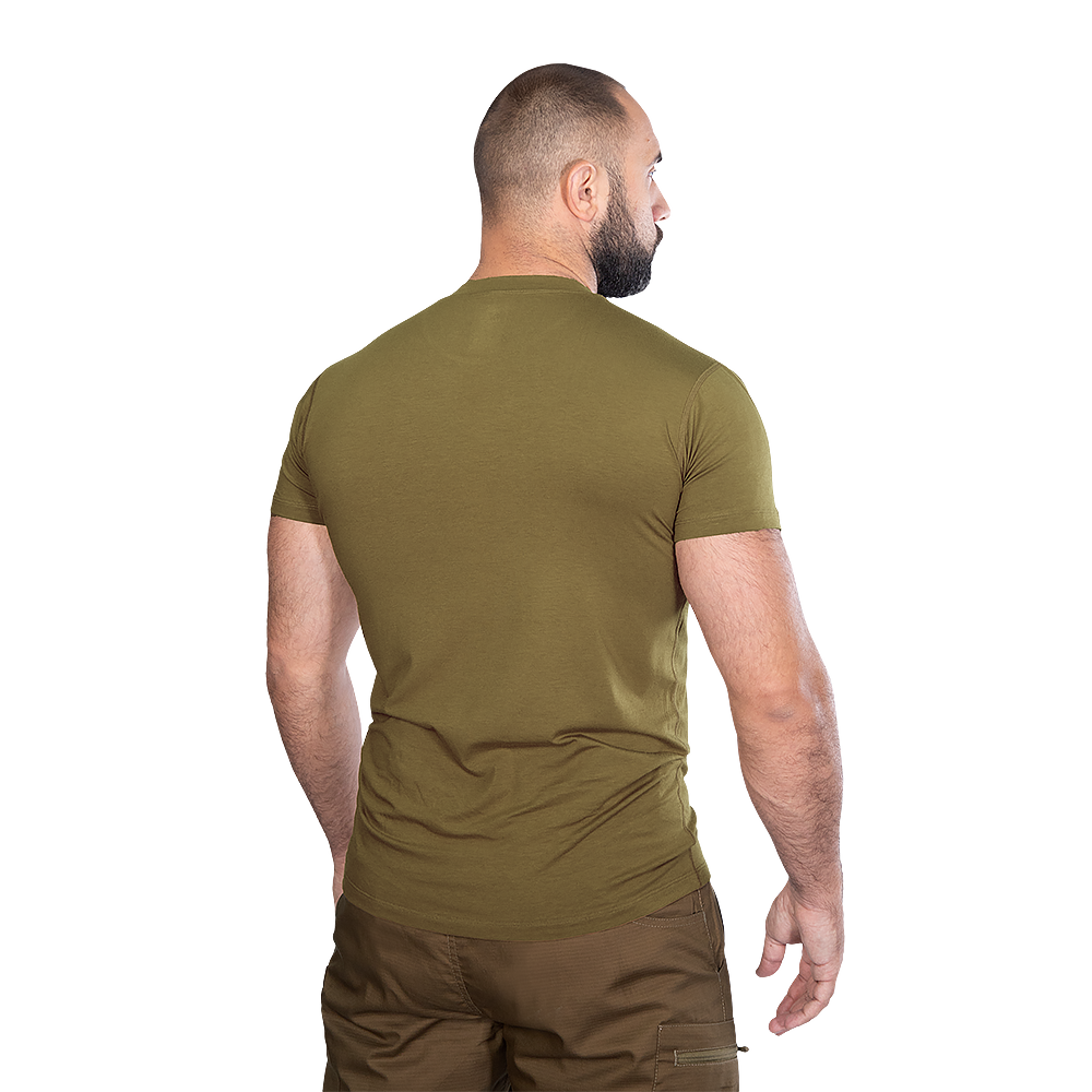 Футболка зшита надійною, еластичною ниткою, за технологією плоских швів. Має зручний, сучасний дизайн та щільно прилягає до тіла, не сковуючи при цьому рухів та не викликає подразнень при тривалій експлуатації.