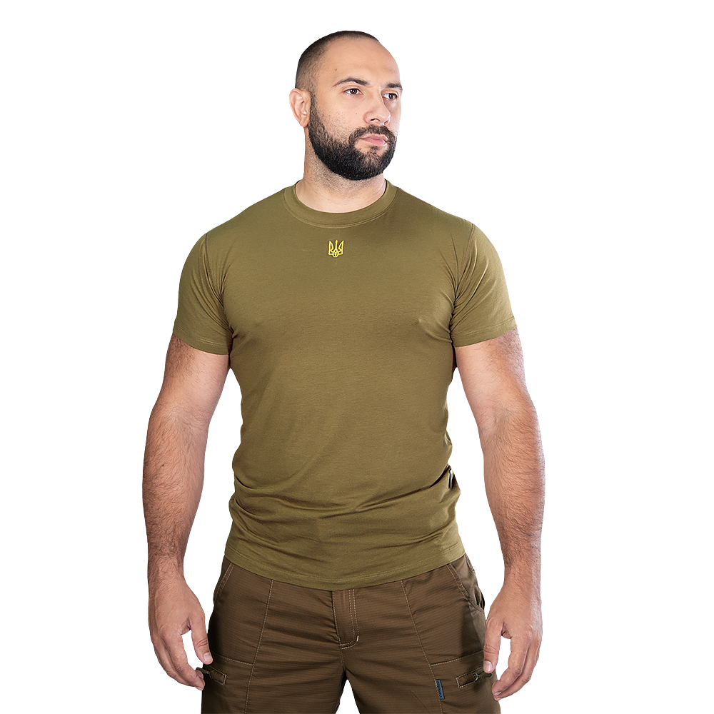 Особливим елементом дизайну футболки є вишивка на грудях. Герб України вишито нитками за допомогою машинної, високоточної вишивки, що робить цю футболку унікальною та виразною.