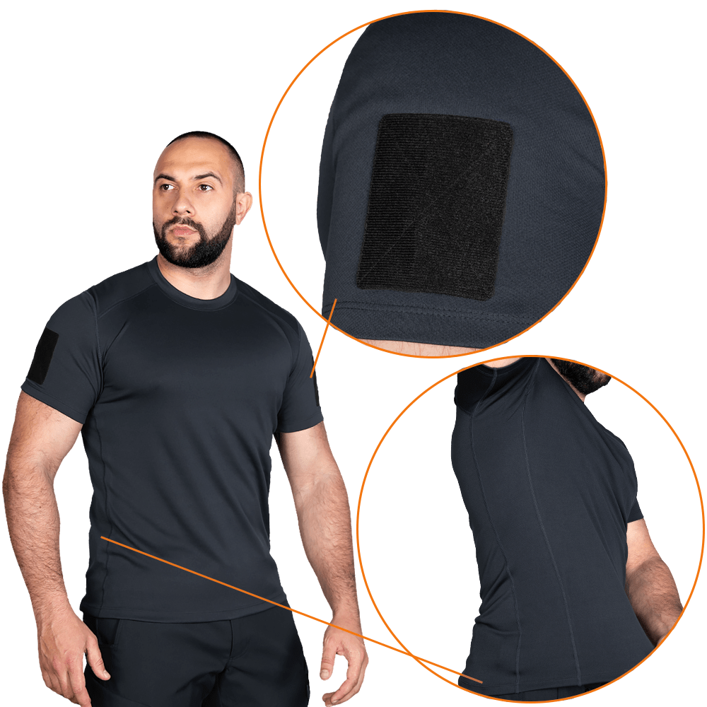 Формена футболка з липучками під патчі та шеврони. Вироблена спеціально для охоронних та воєнізованих структур. Добре підійде в теплу, спекотну погоду на сезон весна/літо.