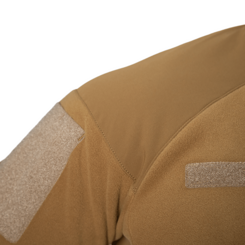 На плечах та рукавах розміщені посилюючі вставки, які виготовлені з міцного нейлону. Ці вставки забезпечують додатковий захист від стирання та підвищують зносостійкість у зонах, які піддаються найбільшому навантаженню, особливо при носінні спорядження або важкої амуніції.
