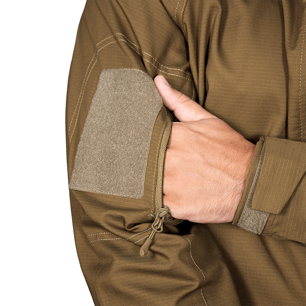 Куртка має дві містких кишені спереду і дві кишені на рукавах, під липучками для патчів або шевронів.