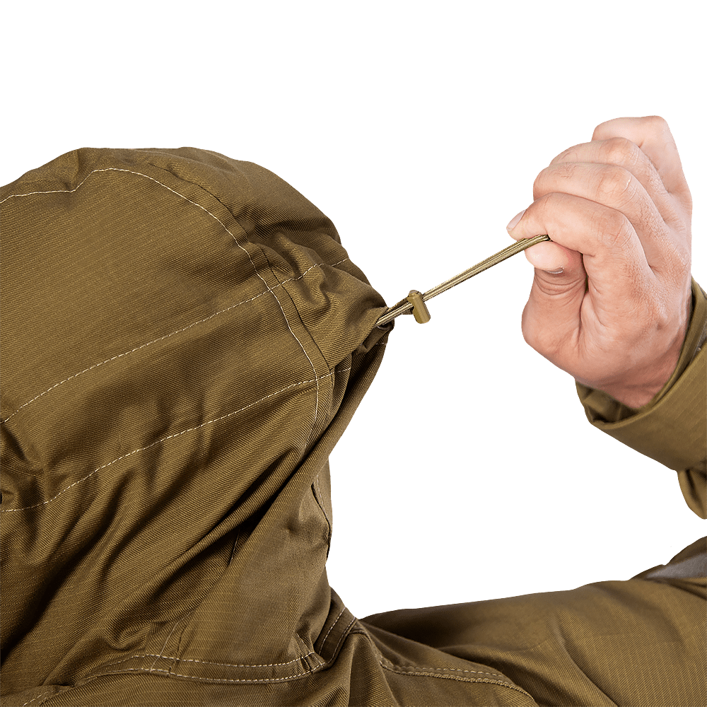 По низу куртки є спеціальні утяжки з пластиковими фіксаторами для регулювання фіксації.