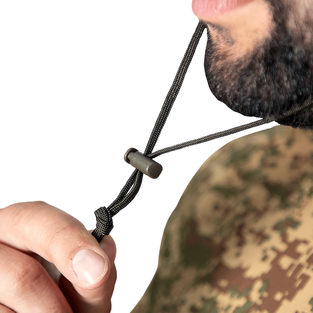 Навколо верхівки капелюха присутня стрічка MOLLE для додаткового обладнання або аксесуарів.