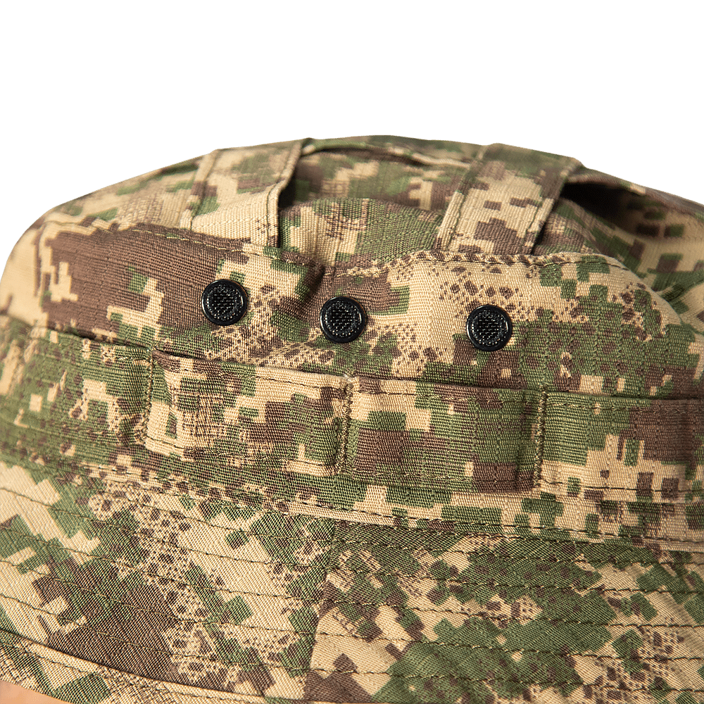 Панама вироблена з міцної, зносостійкої тканини Rip-Stop Teflon. Це суміш поліестеру та бавовни. В тканину вплетені армовані нитки, що утворюють каркас, який робить тканину більш міцною та зносостійкою, а у разі пошкодження тканини, запобігає збільшенню області пошкодження. Додатково тканина покрита тефлоновим, вологостійким просоченням, що захищає виріб від пилу, бруду та вологи.