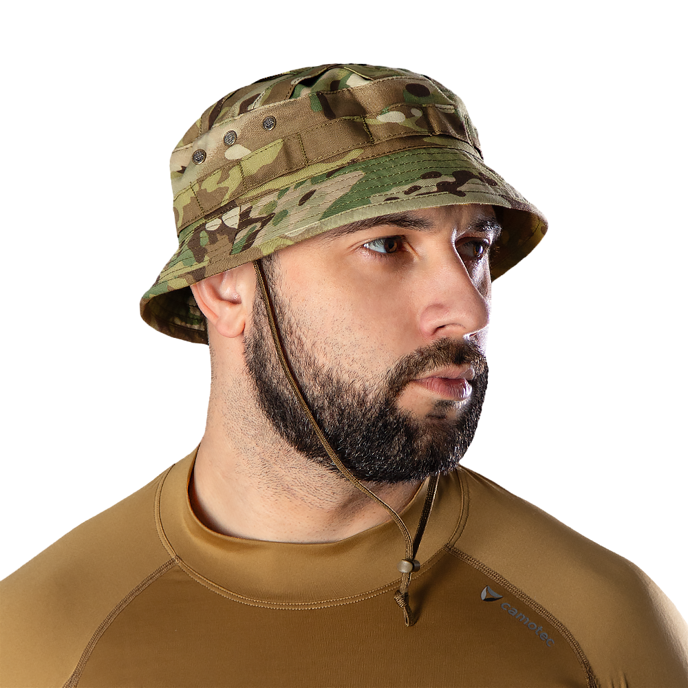 Тактична панама, вироблена з якісних матеріалів та має стропи MOLLE. Добре підійде як формений аксесуар в теплу пору року.