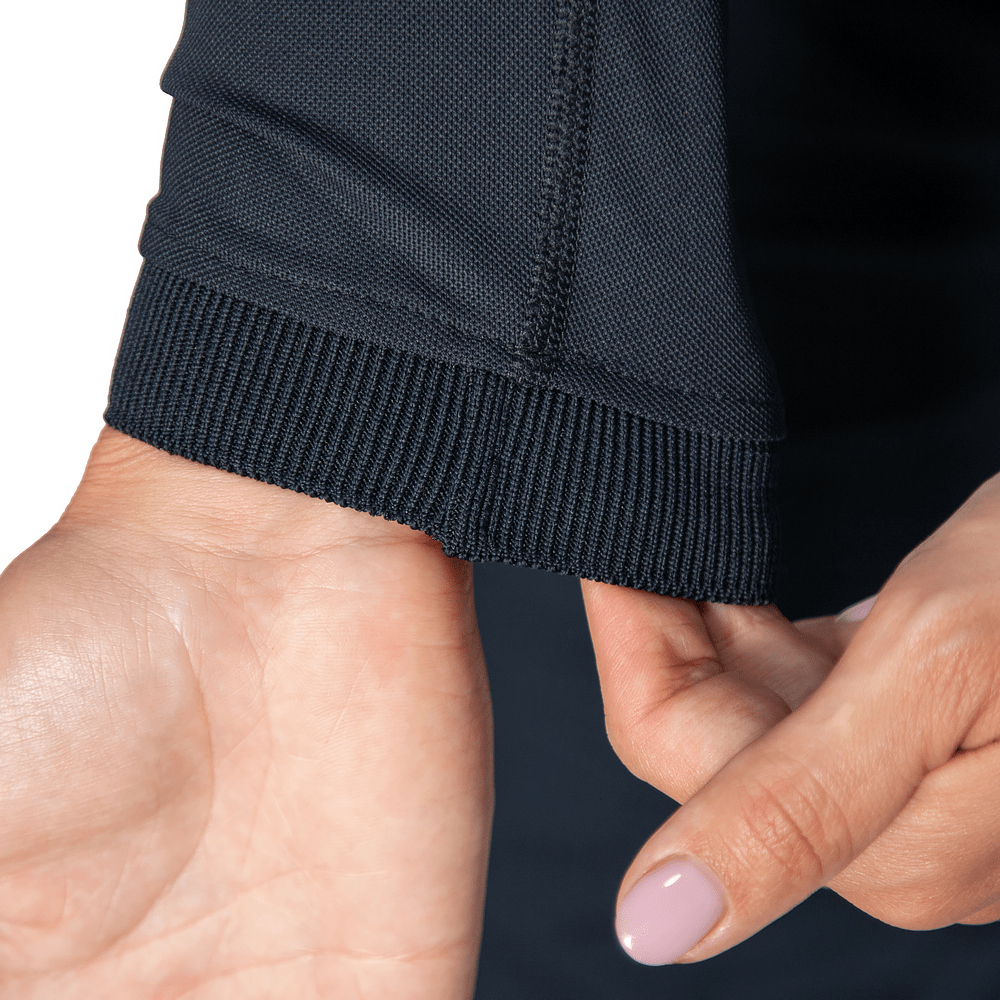 Для поло ми обрали дихаючу та зносостійку тканину CoolPass Pique Light. Вона швидко відводить вологу від спітнілого тіла, залишаючись при цьому міцною та дихаючою. Матеріал має посилений захист від ультрафіолету — він не нагрівається на сонці та не вигорає. Антибактеріальне просочення тканини запобігає неприємним запахам під час активного руху.
