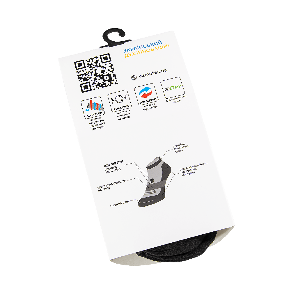 Функціональні короткі шкарпетки, які швидко відводять вологу, мають потовщені зони, еластичні зони, зони для вентиляції.