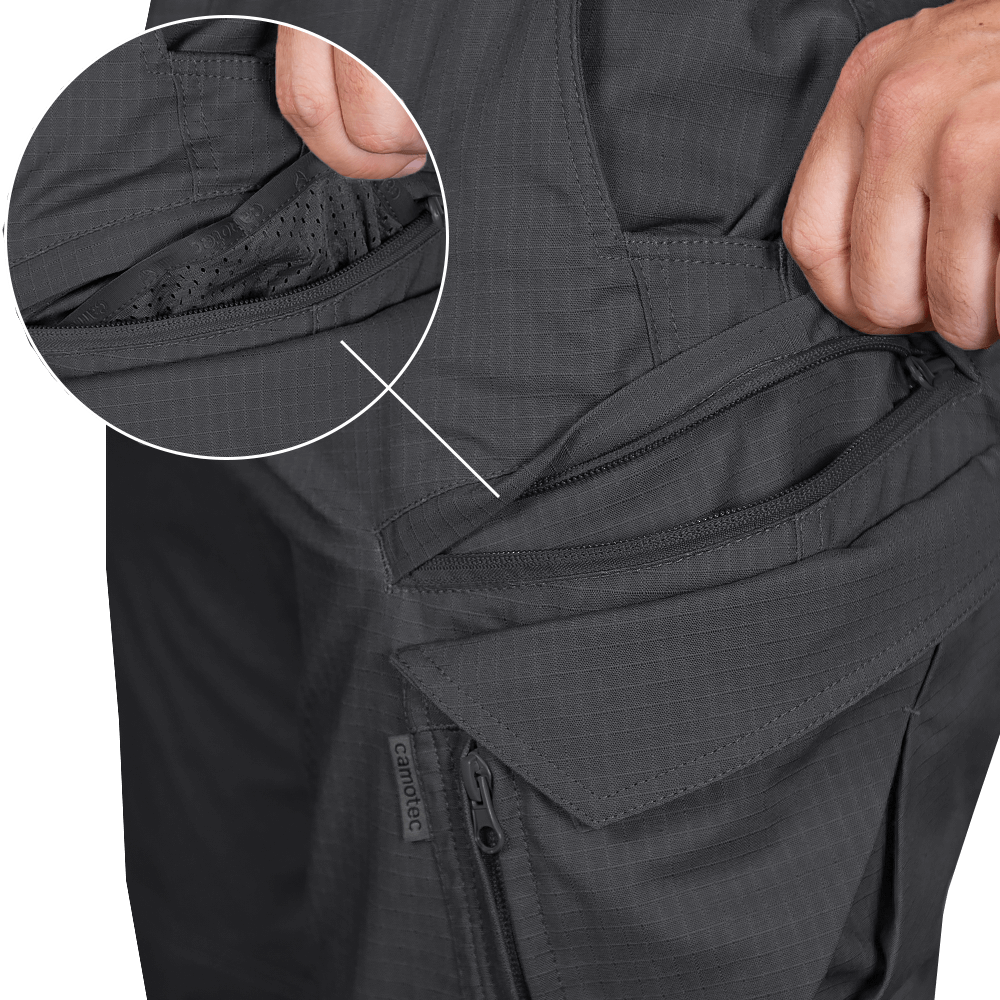 - Кишені на стегнах мають подвійний доступ: верхній та боковий, для доступу до речей з будь-якого положення.