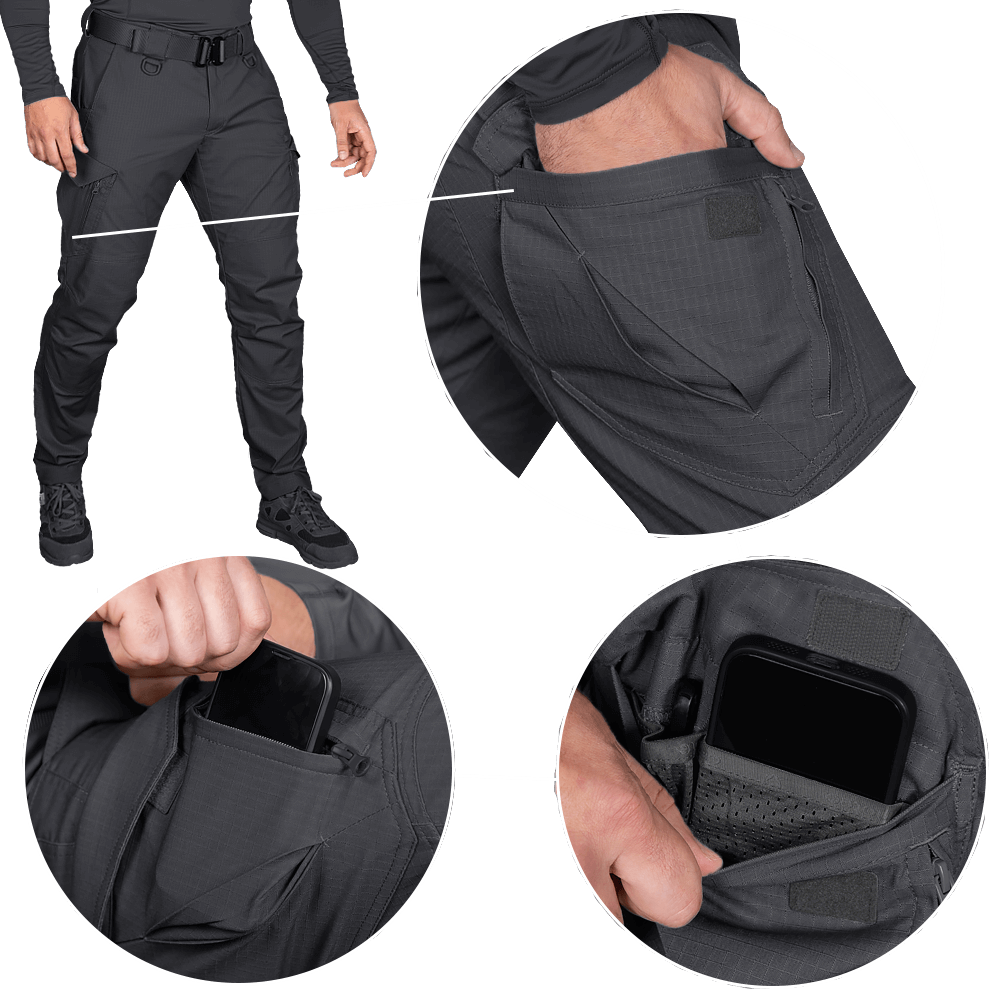 - Зліва 2 кишені на стегнах: карго кишеня, та прихована вище із блискавкою та розділювачами всередині, що дуже зручно для розміщення телефону та запобігання випадання його при активному русі.