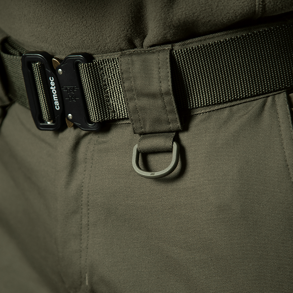 - Спереду на поясі розташовані два D-кільця для додаткового спорядження та аксесуарів.