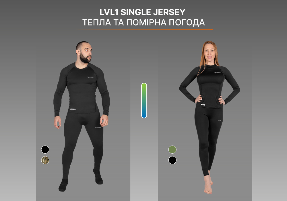 - Тепла погода або активний рух → LVL1 Single Jersey