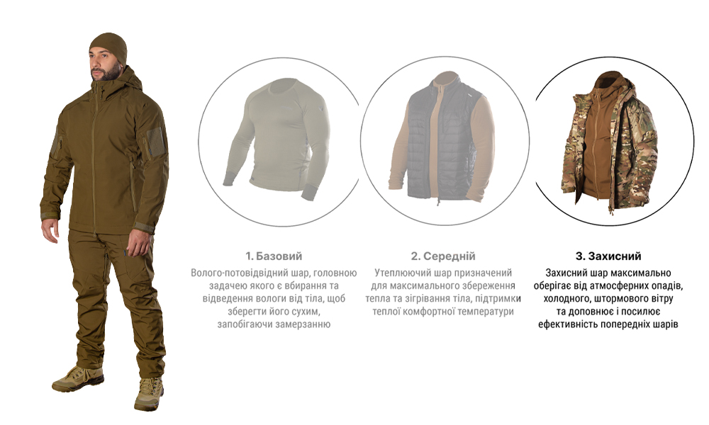 Зовнішній шар - це не просто куртка. Це активний бар’єр, який: